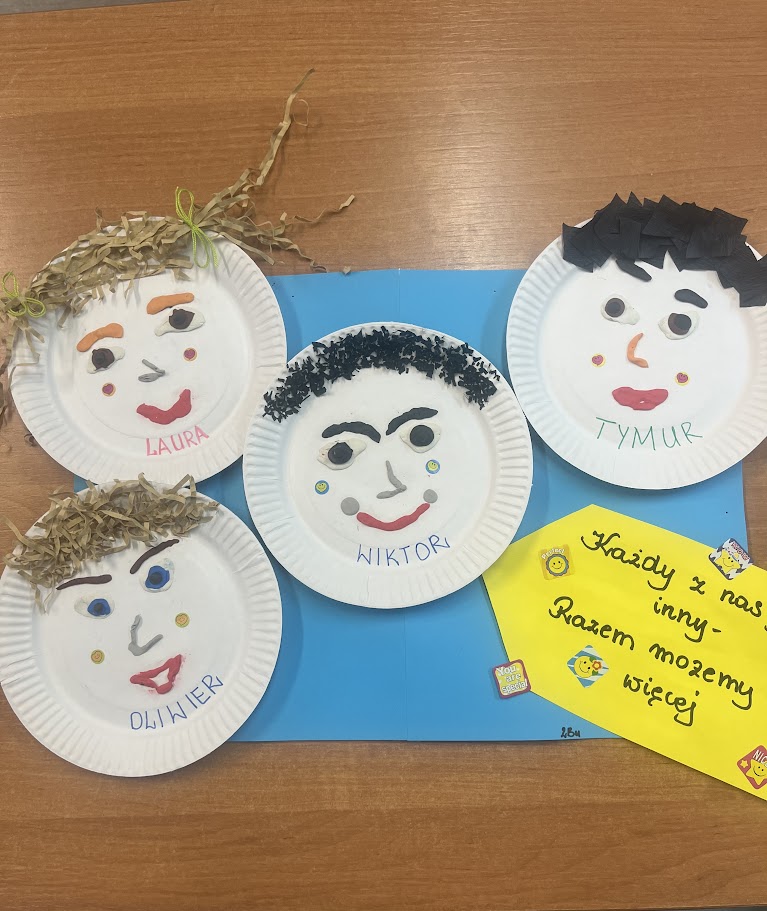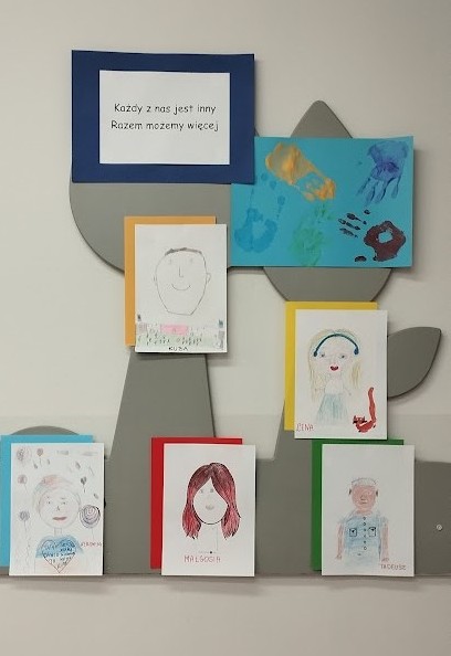 2. Stworzenie plakatów „ Każdy z nas jest inny- razem możemy więcej” z wykorzystaniem autoportretów uczniów.