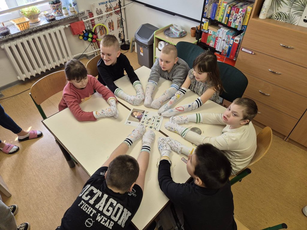 W naszej szkole świętowanie trwa w najlepsze! Za nami kolejny dzień pełen uśmiechu i ważnych lekcji w ramach obchodów Światowego Dnia Zespołu Downa. Podczas dzisiejszych zajęć obejrzeliśmy film edukacyjny, dzięki któremu dowiedzieliśmy się, jak ważna jest akceptacja i dlaczego tego dnia zakładamy skarpetki nie do pary. Graliśmy w skarpetkowe memory- trening pamięci w najbardziej kolorowym wydaniu! Projektowaliśmy własne skarpetki 😍. Białe bawełniane skarpetki ożyły dzięki wyobraźni naszych uczniów. Powstały prawdziwe dzieła sztuki! Rozwiązywaliśmy karty pracy, aby utrwalalić zdobytą wiedzę poprzez ciekawe zadania i zagadki.