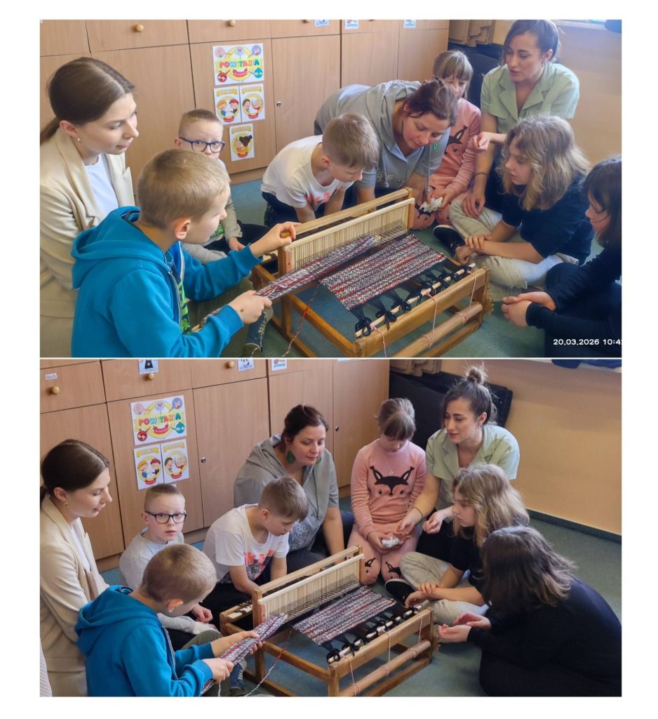 W ramach innowacji pedagogicznej „Cztery pory roku – podlaskie obrzędy i zwyczaje” uczniowie z zespołu 3A SPL wzięli udział w warsztatach tkackich poprowadzonych przez panią Aleksandrę Straszak. Podczas zajęć uczniowie zdobyli podstawową wiedzę z zakresu tkactwa, poznali różnego rodzaju tkaniny ludowe i urządzenia, na których się je wykonywało. Spróbowali swoich sił na krośnie, tworząc piękny szal. Kolejnym etapem zajęć było wykonanie wiosennych kwiatów. ![]()