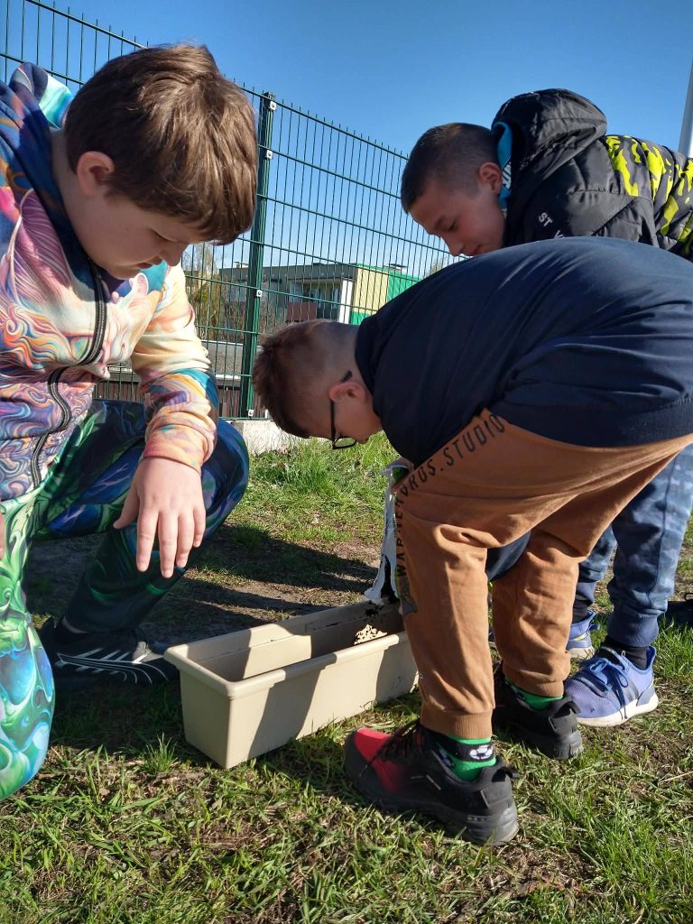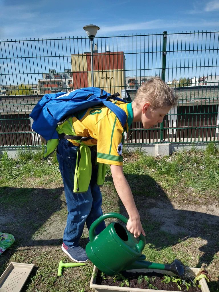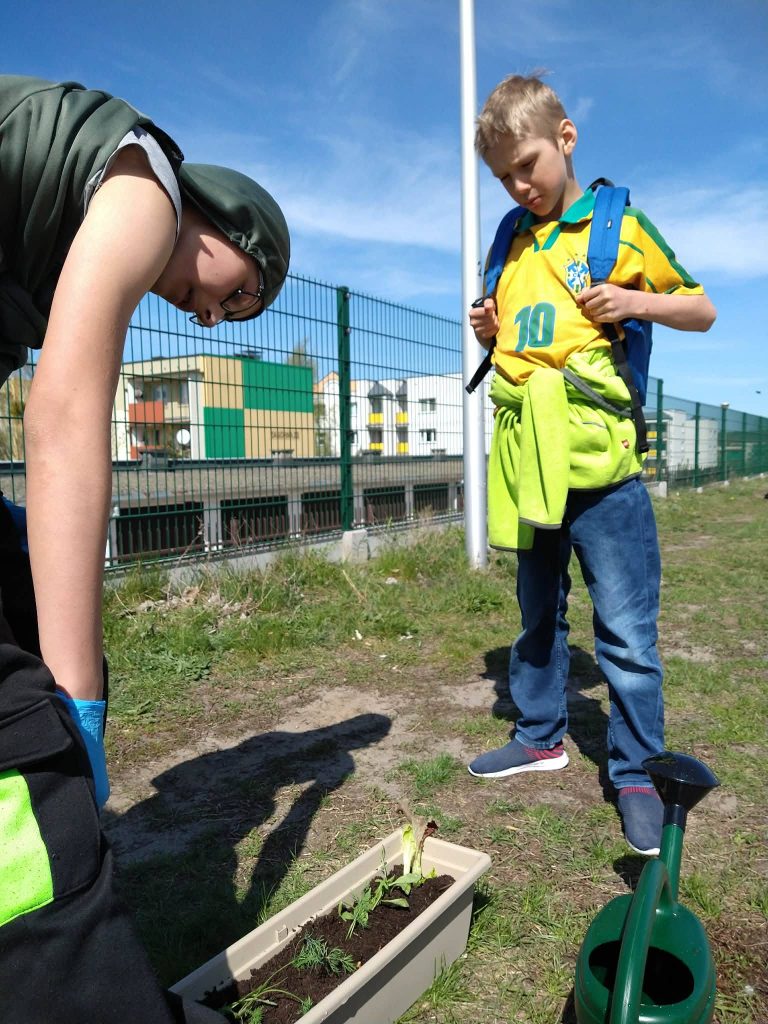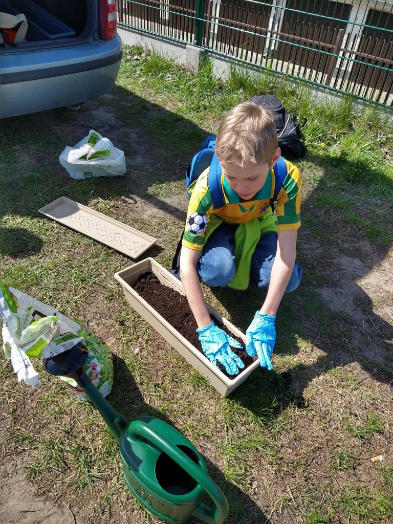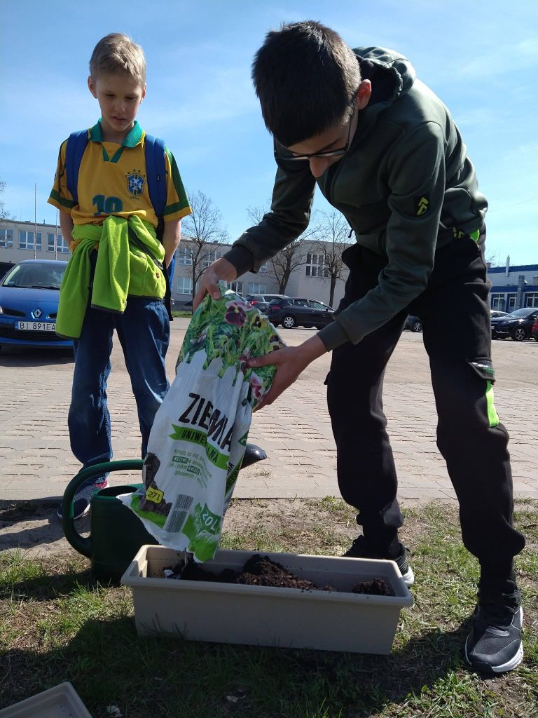 22 kwietnia, w Światowym Dniu Ziemi zadbaliśmy o mniej dwutlenku węgla, a więcej tlenu w naszych salach lekcyjnych, sadząc i siejąc warzywa. Rozmawialiśmy też na temat oszczędzania energii, wody i produkowania mniejszej ilości odpadów, co obrazują wykonane przez nas prace.